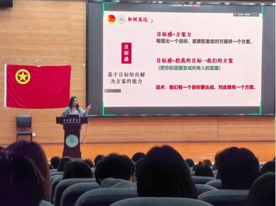 冯文薏以《办公礼仪和有效沟通》为题,为学员们讲解了“什么是沟通”——从“听准确”到“说明白”,从精准倾听到清晰表达。她强调,沟通是交际的桥梁,学会沟通是作为一名团学组织成员的必修课。该如何有效进行沟通呢?她说道:积极的回应是确认需求、肯定需求、思考行动的总和,对信息的正确接收是表达自己观点的前提;在表达自己观点时,须做到“3个始终”——始终保持开放性、始终保持目标感、始终保持建设性。
