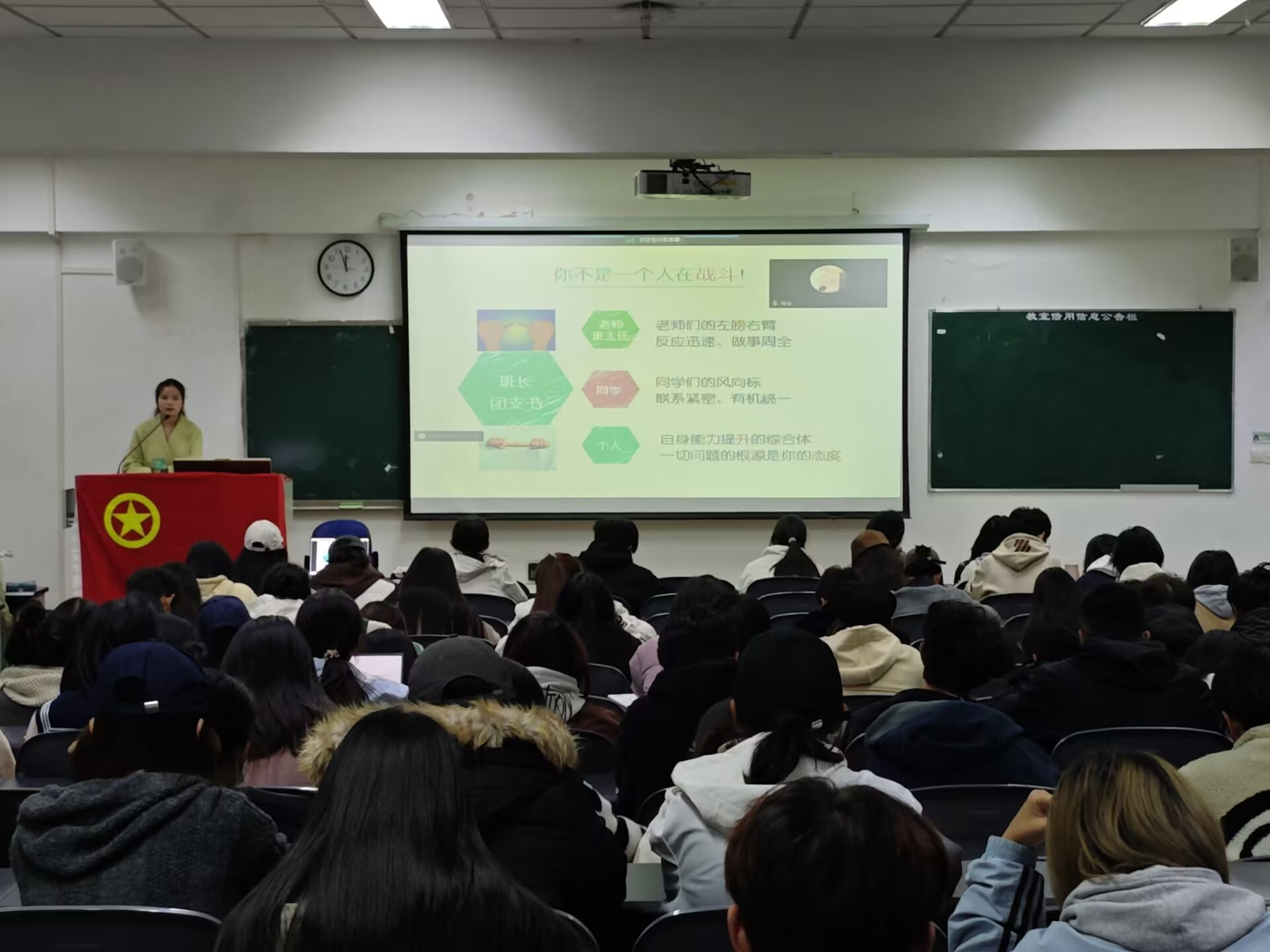 通过对班级类型的分析,王梓熙老师为班团干部提供了建设优秀班团支部的方式方法,树立了班团的优秀关于每一位班团成员的理念,从班团干部到班级的每一个人,都是集体的一部分,每一份荣誉都需要全体成员的参与和努力。同时,也强调班团活动的策划,以及优秀班团活动的申请以及公示等相关问题的说明。最后,王梓熙老师举出多个优秀班团支部的例子供班团干部们参考与学习。