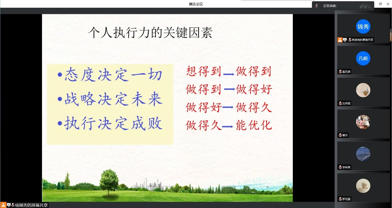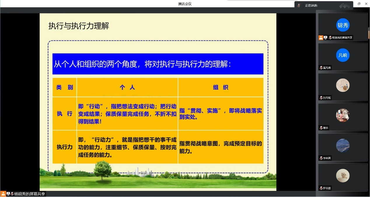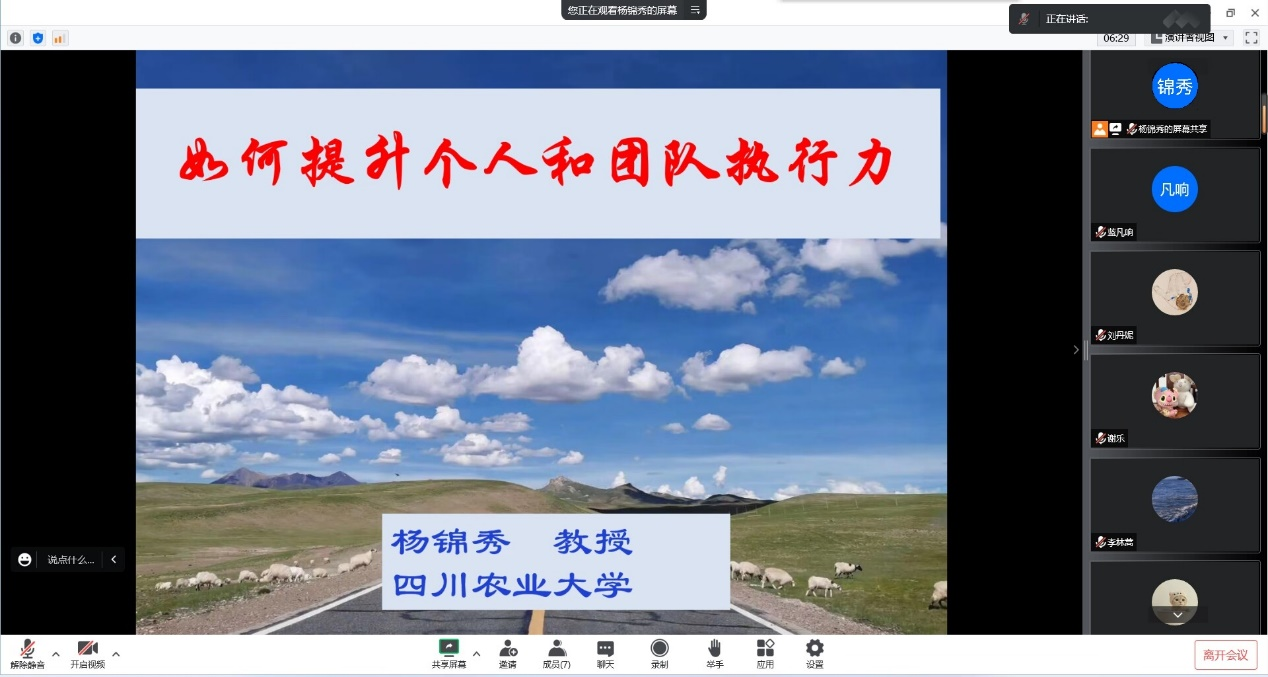 徐磊老师带领全体青马学员走进《阅读马克思主义经典著作的意义与方法》,从“树立场”、“讲方法”、“有原则”、“明意义”几个方面深入浅出地阐述了阅读经典著作的意义和方法。冷军老师以《学生组织团队管理的思考与探索》为题展开授课,从建党精神出发,带领学员们从伟大建党精神中汲取精神力量,开创未来的行动指南。杨锦秀教授在《赢在执行力》的讲解中,运用生动具体的例子,带领学员们理解个人执行力与团队执行力的定义、意义、提升途径及方法,提出“一个重点、两个前提、三个管理、四个心态”。徐定德副教授深入浅出的《大学生学术调研与论文撰写》更是让同学们收益匪浅,课堂内容更是让同学们对调研报告的结构和写作方法有了更加系统的认识。