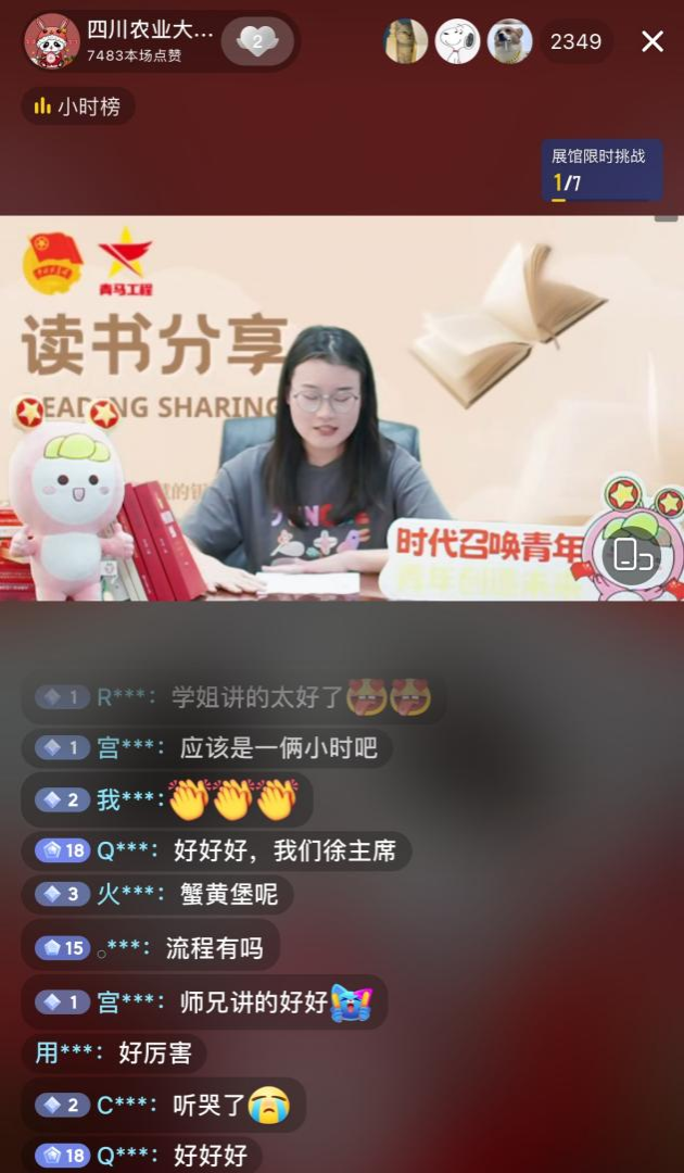 “我最近也在读《红星照耀中国》!”“之前我有阅读过一本《试飞英雄》,里面记录了先辈们为祖国未来献出宝贵生命的故事,值得推荐!”评论区中,同学们与分享学员进行交流讨论,纷纷留言自己近期在阅读的书籍,并积极推荐大家阅读。“下面到了我们的飞花令环节!大家听好啦,我们的第一个字是……”“简直太有意思啦!”“诗词真有魅力!”读者直播活动中间穿插有飞花令和诗词接龙环节倍受同学们的喜爱,不少同学在互动结束后意犹未尽,表示自己下来还要读更多的诗词,丰富充盈内心世界。