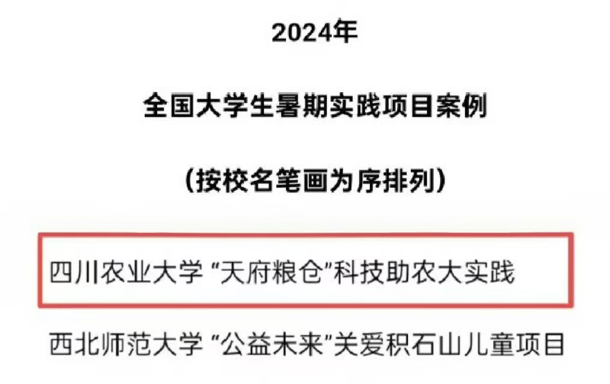 近日,由共青团中央指导、中国青年报主办的“2024年第十届全国大学生暑期实践展示活动”案例评选结果揭晓,我校“天府粮仓”科技助农大实践项目成功入选项目案例。