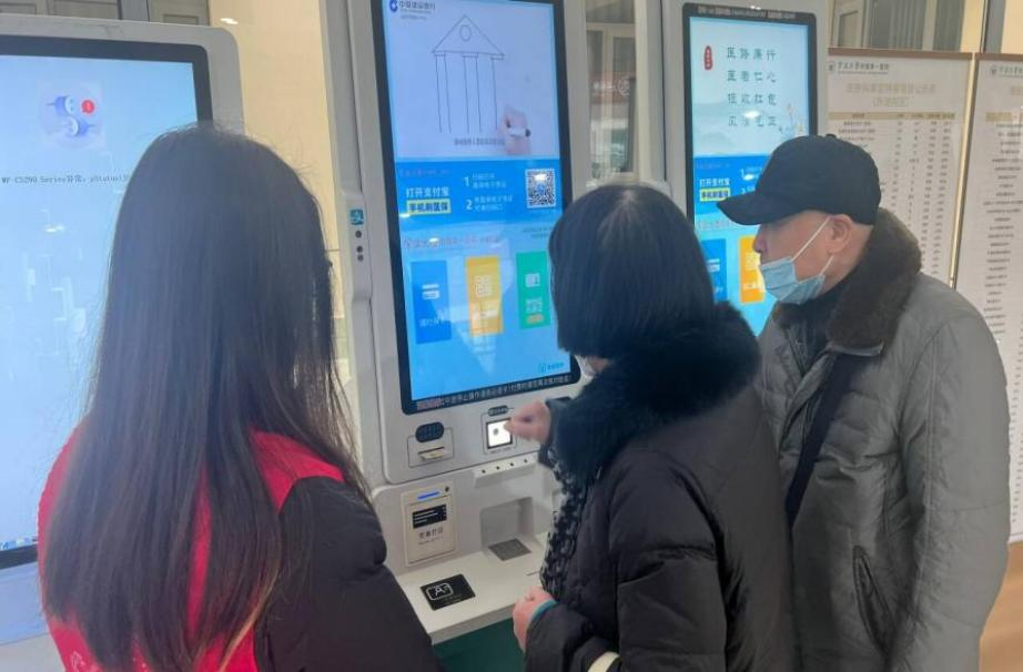 图为动物医学院刘雨薇帮助老人挂号