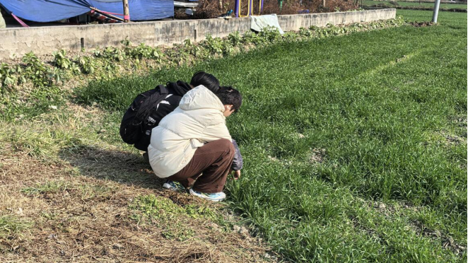 图为“青微惠农·菌剂兴牧探索先锋”团队成员进行实地考察