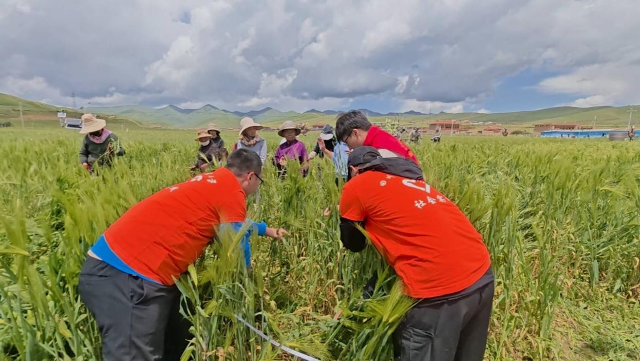 “青稞载道,躬耕高原”团队正在测青稞单位面积产量。