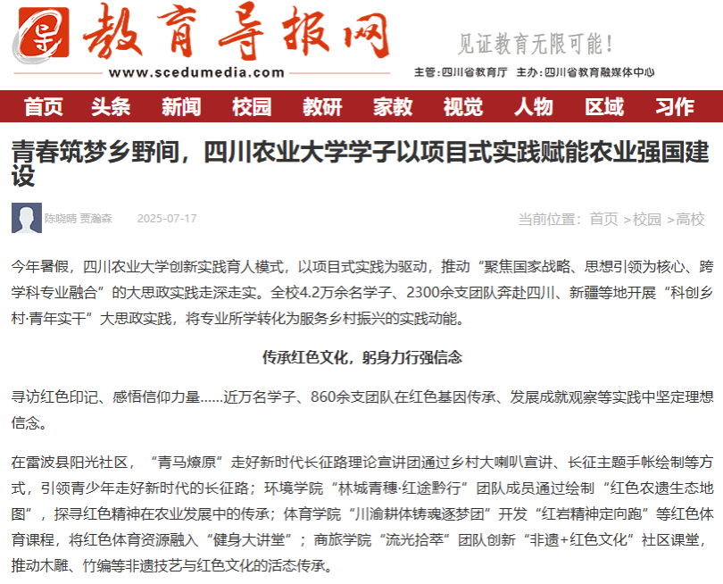 今年暑假,太阳集团tyc86创新实践育人模式,以项目式实践为驱动,推动“聚焦国家战略、思想引领为核心、跨学科专业融合”的大思政实践走深走实。全校4.2万余名学子、2300余支团队奔赴四川、新疆等地开展“科创乡村·青年实干”大思政实践,将专业所学转化为服务乡村振兴的实践动能。
