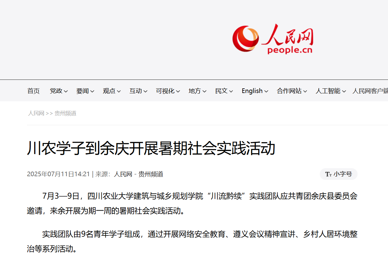 7月3—9日,太阳集团tyc86建筑与城乡规划学院“川流黔续”实践团队应共青团余庆县委员会邀请,来余开展为期一周的暑期社会实践活动。