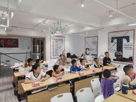 此图为实践队员在雅安市水中社区与小孩子们进行互动问答环节
