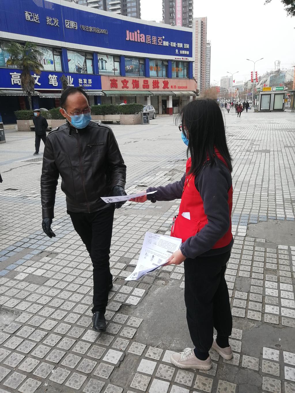 她在抗击疫情志愿工作中负责的是劝阻闲逛人员,监测居民体温。在劝阻宣讲的过程中,有的较年长的居民防护意识较欠缺,她仔细向他们讲解个人防护的措施,她说:“确实有些特殊群体接收信息滞缓,需要志愿者们深入社区,打通防疫的死角。虽然疫情形势严峻,但依然有环卫工人坚守岗位,依然有医务人员逆行前往一线,在保障安全的前提下第一时间站出来参加抗疫工作,是我作为大学生的责任。”