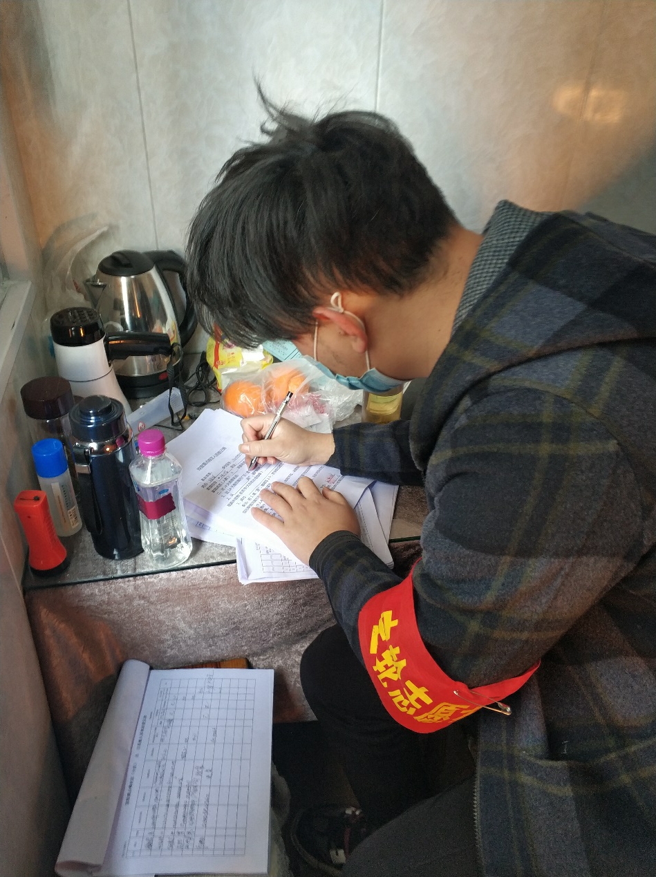 他在四川省广元市利州区宝轮镇云峰社区挨家挨户的进行人口排查登记,也对来往人员进行登记和排查。他一共进行了十多天的志愿工作,他说:“虽然我不是医生,无法到一线去与病毒做抗争,但是我觉得自己还是能做点什么的,所以我选择自愿参加了家乡的志愿者。”。在与一同工作的叔叔阿姨交往中,他愈发地认真对待此次疫情,认真地工作,他深深地感受到了新一代青年必须要有担当和社会责任感,以及感受到了中国人在遭遇困难时的团结、坚毅、与韧性。