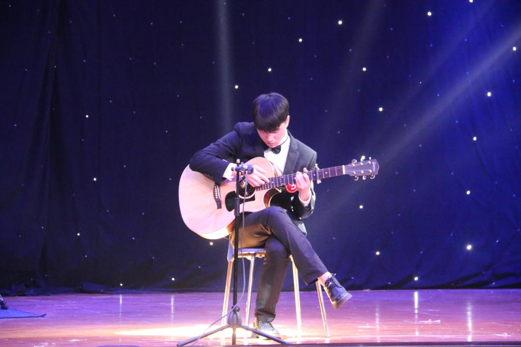 聚光灯下,比赛在乐曲合奏《拈花笑》中拉开了帷幕;合奏乐曲《美国巡逻兵》节奏激昂,让观众耳目一新,热血沸腾;王志健同学带来的吉他独奏《Like a star》唯美浪漫,让观众沉浸其中;张圣泽同学带来的钢琴独奏《黄河》气势磅礴,让人仿佛看到了那滚滚流逝的黄河;古筝合奏《山丹丹花开红艳艳》用婉转动人的音色让我们想到了大山的壮丽;合奏《加勒比海盗》号角声如雷鸣,将现场气氛推向高潮;长号钢琴合奏《咏叹调》使我们的心灵共舞,陶醉于音乐的海洋;器乐合奏《the changing seasons》旋律优美,如四季交迭;器乐合奏《阳关三叠》缓缓奏出楚天湘水与夜霜;提琴合奏《花之圆舞曲》为我们重现了胡桃夹子舞剧中最著名流传最广的一首乐曲。陈思沛同学的《幻想即兴曲》时而欢快时而沉缓,让观众沉浸其中。最终,经过激烈的角逐,《拈花笑》《detective-conan》《渔舟唱晚》《莫扎特小夜曲》《shipwrecked》5个组合成功晋级。