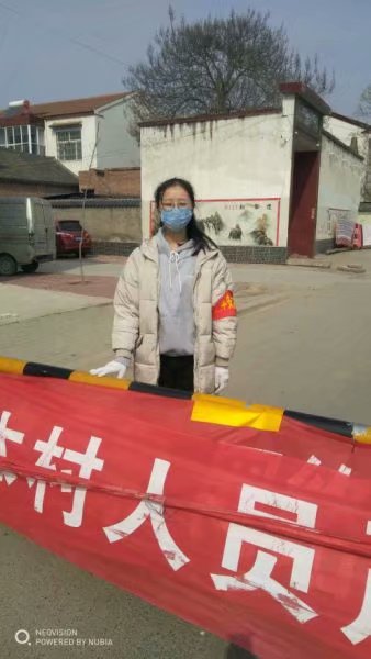 她认为,自己作为一名志愿者加入家乡的防疫工作,贡献自己的一份力量,这是一次宝贵的实践经历。她积极的向乡亲宣传防疫知识和注意事项,将防疫宣传做到细致,防疫是每一个人的责任,身为一名共青团员,更是义不容辞。她说“疫情的爆发封住了人的往来,封住了车辆通行,但是封不住我们攻克困难的决心。