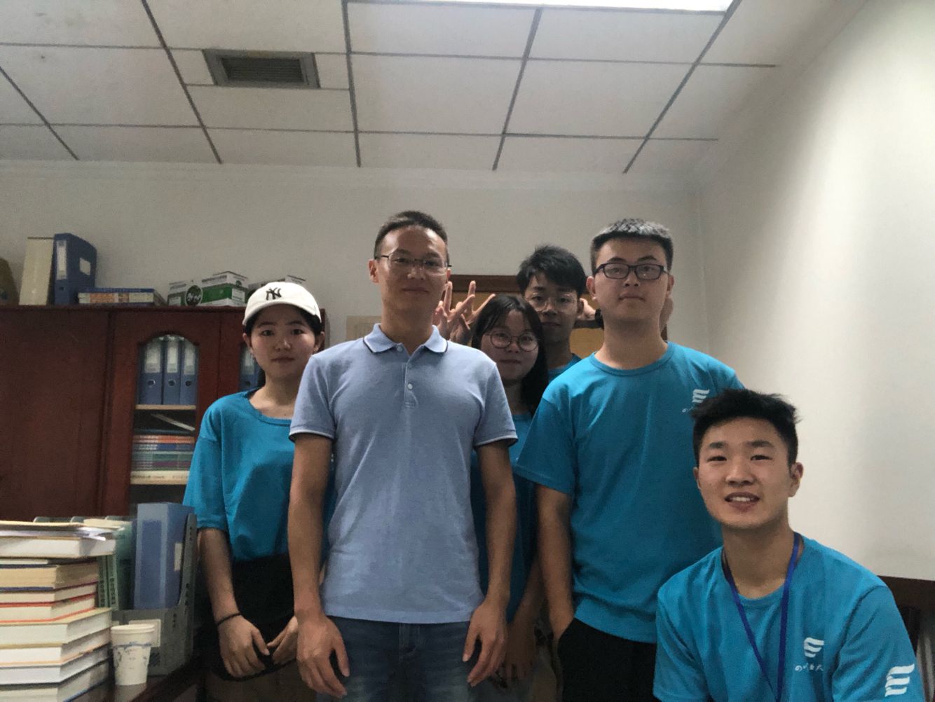 团队与曾获国家级助学金的李勇在办公室的合照