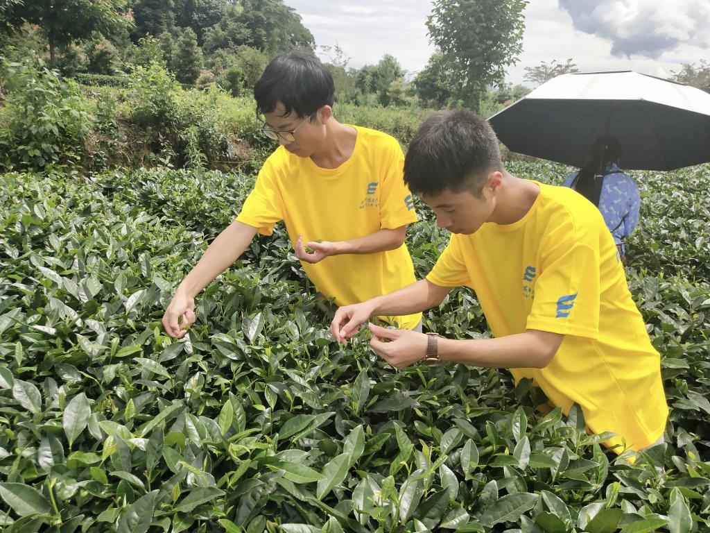 茶旅人 实践队员帮助村民采茶 蒋雄