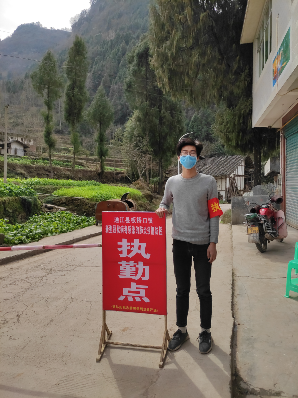 从2月12日起,他积极配合政府工作,每天早上九点开始下乡入户进行宣传,讲解口罩酒精的正确使用方式以及做好卫生防范工作。乡间的道路泥泞崎岖,却也阻挡不了志愿服务脚步,他说“医生护士走在前线,为了人民的安全,为了国家的安宁愿意日日夜夜的辛勤付出而我们身为大学生,更应该肩负起自身的责任,为了美好明天而奋斗”。他明白,没有什么岁月静好,不过有人在替我们负重前行。