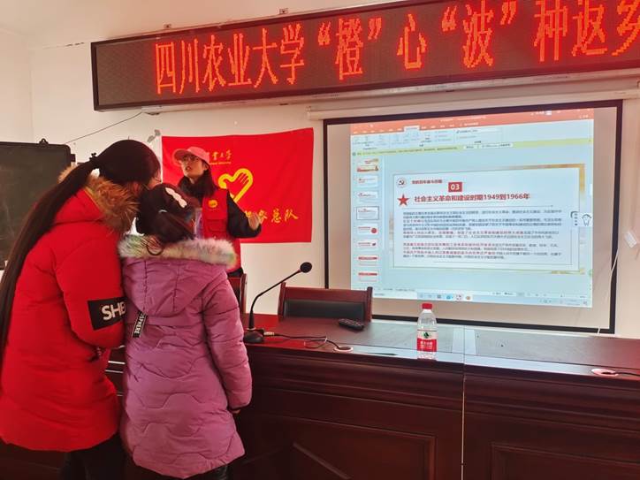 寒假期间,我校22名雷波籍在校本科生组建的“橙”心“波”种返乡实践特色服务队,回到自家的家乡,在雷波县千万贯乡、永盛乡周边等五个乡镇以及黄琅镇大杉坪村、卡哈洛宝山村、马颈子互助村等多个村落开展普通话推广、党史学习教育、政策宣讲、乡村调研、科技助农系列实践活动,为乡村振兴贡献青年力量。