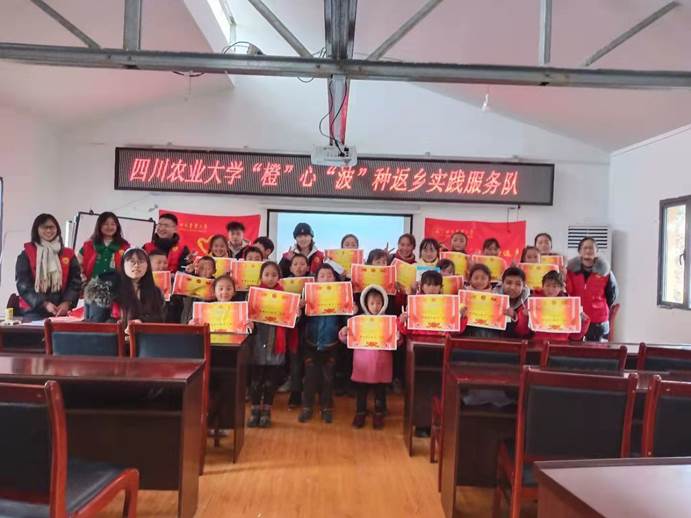 据悉,雷波籍“橙”心“波”种服务队是我校首个学生返家乡开展乡村振兴的特色实践服务团,也是我校重点组建的九个师生雷波县重点帮扶团队之一。实践团队聚焦家乡发展所需,积极发挥“家乡人服务家乡发展”的特殊优势和学生实践的主体作用,在主动参与老师科技服务雷波特色产业发展的实践中受教育、长才干,在为当地少年儿童等普通话推广、政策宣讲中作贡献,在持续的“雷波服务实践”创建川农青年返家乡实践品牌。