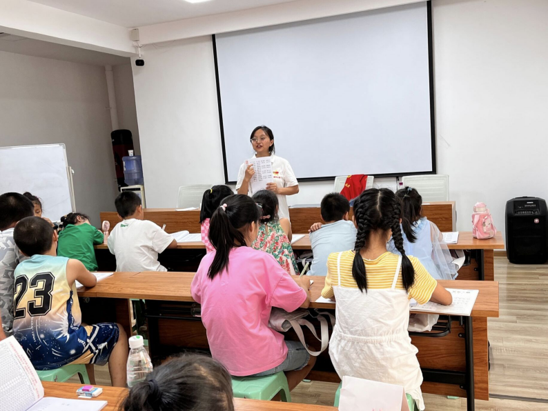 图为代奇玉同学在给小朋友们上课