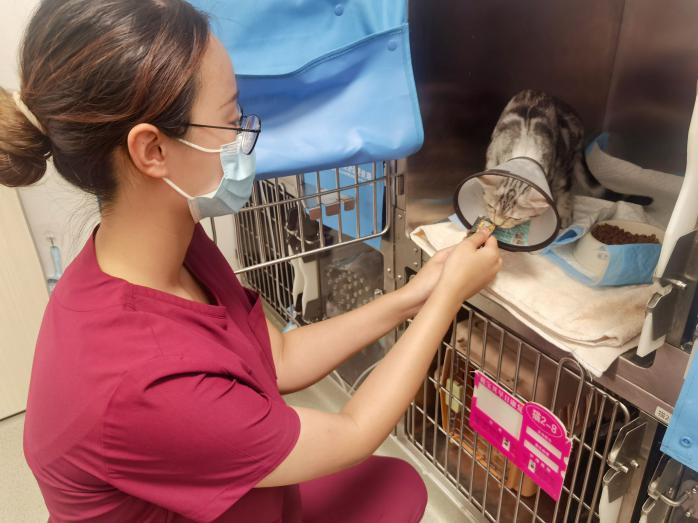 动物医学院庞丝宇同学凭借专业优势,成为成都维特中心医院见习兽医师助理。清理笼舍、检测动物生命体征、给动物喂药打针、辅助医生配药等琐碎的工作日复一日。“在住院部实习的每一天都很忙碌,甚至没有时间吃饭,有心酸和委屈,但更多的是幸福和满足。”