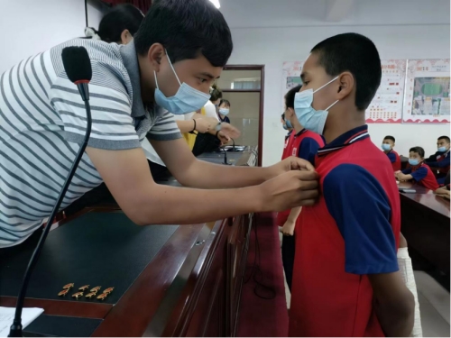 入团仪式为新团员带上团徽