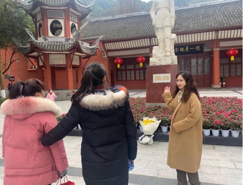 在四川宜宾赵一曼纪念馆里,青马学员万艾琳作为兼职工作人员在寒假中持续为上千余游客绘声绘色的讲解巾帼英雄赵一曼的故事。青马学员李沁娟前往重庆渣滓洞集中营缅怀我校著名校友江竹筠,并将江姐解放前夕誓死不屈的故事拍成宣讲视频,给屏幕前的同学带去红岩精神。