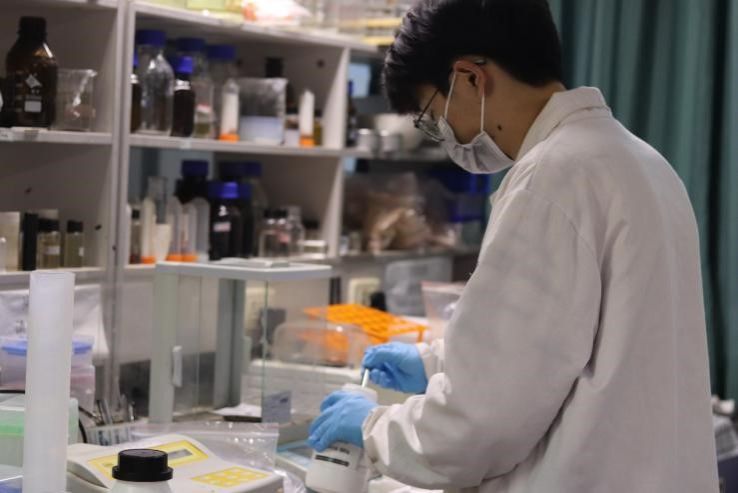 图为“水”尽其用团队成员开展水样水质检测实验