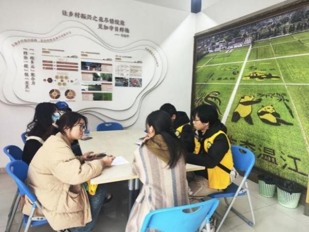 “几位同学提到的‘合理利用乡村独特资源,改善农民生计模式,让更多年轻人留在乡村’的建议对我很有启发,接下来我们会利用好乡村自然资源做好‘农旅融合’,促进乡村振兴。”道明镇竹艺村一位驻村干部谈道。资源学院“农民生计”小队去往成都市多个村庄,采用实地问卷、访谈调研等多种形式,调查不同资源型村庄的生计模式,依托村庄资源和优势进行分析,了解农民生计现状及问题,促进农村经济发展,进而推动乡村转型。