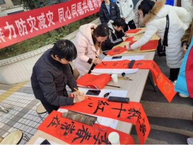 在雅安市中大街社区中,机电学院“传华夏文明,践志愿初心”团队为居民送上定制春联,为独居老人送温暖,300余幅火红的春联和400余张“福”字渲染出了浓浓年味儿。