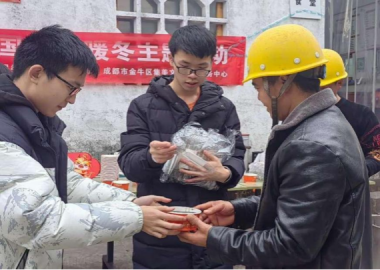食品学院“益食无忧”团队在腊八节来到成都市正兴街道,为社区居民与工地民工送上1000余碗热气腾腾的腊八粥,为冬日换上了暖色调。