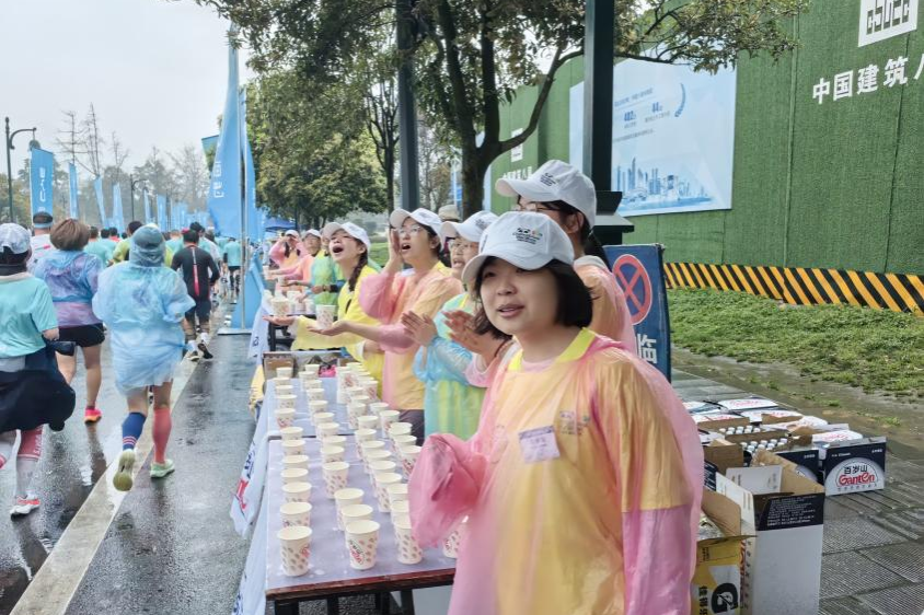 大赛期间,我校志愿者承担欢乐跑赛段全部服务岗位,累计服务选手万余人。凌晨4点,500余名志愿者集合完毕,在雨夜中来到服务岗位,迅速投身志愿工作。礼仪志愿者、医疗志愿者、补给站志愿者在各自岗位上全力以赴,为运动员提供秩序维护、医疗观察、奖牌发放、能量补给等相关服务,为赛事的顺利进行提供了有力保障。为补充专业志愿服务力量,校团委学生融媒体中心10名志愿者组成摄影组进入赛会摄影团队,为组委会提供了800余张展示大赛热烈氛围和选手卓越风采的高质量照片,得到主办方的一致认可。“每当看到选手们因为我们提供的帮助而重新焕发活力,我就深感从事志愿服务的价值和意义。能够为这场马拉松赛事贡献自己力量,我觉得无比荣幸和骄傲。”来自建筑与城乡规划学院的志愿者杨浩说道。