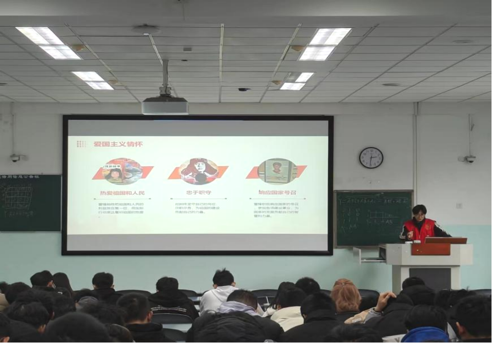图为机电学院宣讲者为同学们讲述雷锋的爱国情怀