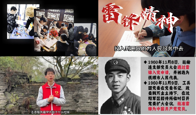 人文学院同学拍摄雷锋精神双语情景剧《许国不复为身谋》,通过实景演绎让同学们身临其境感悟雷锋精神,争做新时代雷锋新青年。动物科技学院青年志愿者在成都温江区公平小学开展“学习雷锋”知识讲座,结合现实生活案例,深入浅出讲解雷锋生平故事,同时以“翻转课堂”形式鼓励小朋友在参与中更好领悟雷锋精神的时代内涵。机电学院青年志愿者举办“传承雷锋精神,践行志愿之风”宣讲大会,带领255名同学们深入了解雷锋的光荣事迹和雷锋精神在新时代的丰富内涵和外延,鼓励大学生们用担当奉献践行新时代雷锋精神,让雷锋精神在新时代绽放出更璀璨的光芒。