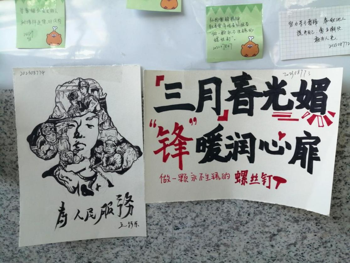 信息工程学院、水利水电学院组织同学以“学习雷锋”为主题自制600余份手抄报或绘画作品,艺术与传媒学院收集80余份标语、手工、海报等作品和助人为乐相关照片形成“雷锋精神文化墙”。创新艺术与雷锋精神的有机融合,让同学们在潜移默化中领悟精神、增进认同,使思想课堂的成效掷地有声。