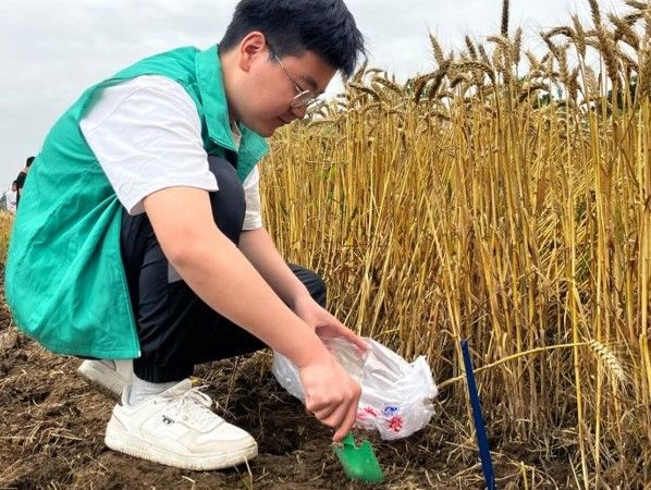 “环抱未来,愿净同行”实践团成员正在采集土样