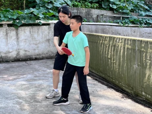团队成员教小朋友打乒乓球