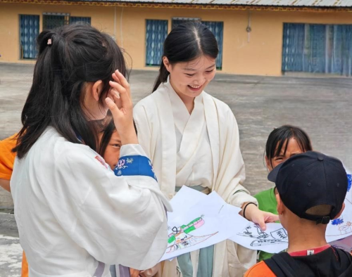 团队成员身着汉服为小朋友开展绘画课堂