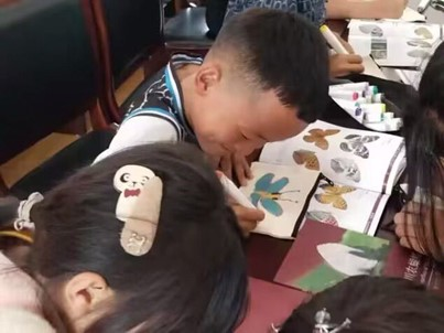 小朋友正在学习蝴蝶绘画
