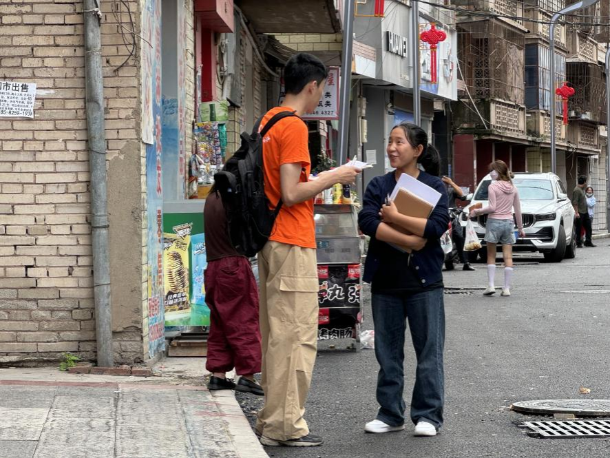 图为“‘喜’相逢,‘德’偿所愿”团队成员正在进行调研