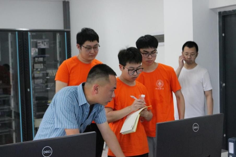 图为土木工程学院团队成员在污水处理厂中控室考察污水处理各流程