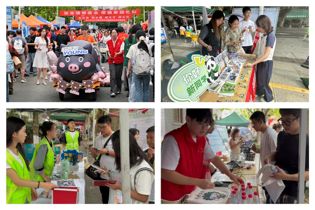 校团委联合动物科技学院、农学院共同策划打造农民丰收节·大学生“丰收游”花车巡游,由志愿者驾驶“掌上明猪号出猪车”成为迎新季里一道别样的风景线,生动展现出学校农业学科的优势,为新生入学季注入了别样的农业活力与温暖氛围;信息工程学院设立互动体验区,打造沉浸式编程对话体验;风景园林学院结合学科特色,设置特色插花打卡点。