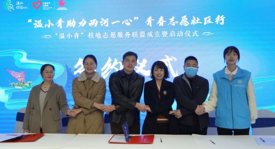 12月5日是国际志愿者日,校团委与温江团区委联合西南财大、成都中医药大学等部分驻温高校团组织,共同发起“温小青”校地志愿服务联盟,举办“温小青助力两河一心”青春志愿社区行启动仪式。