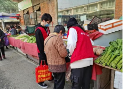 志愿者陪老人选购菜品