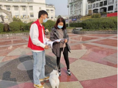 志愿者为社区居民宣传自制养宠知识手册
