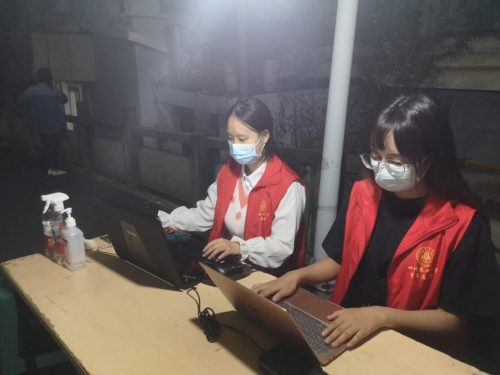 “请大家不要拥挤、有序进入超市选购用品,谢谢配合。”每到就餐时刻,食堂、超市等人员密集、易导致疫情传播的场所,志愿者们便会时刻注意控制人员流量,提醒隔位用餐并于餐前餐后戴好口罩。晚间休息时刻,校园各处又会出现夜间“志愿红”的巡逻身影,对人流密集点进行提醒疏散,降低疫情传播的所有可能性。