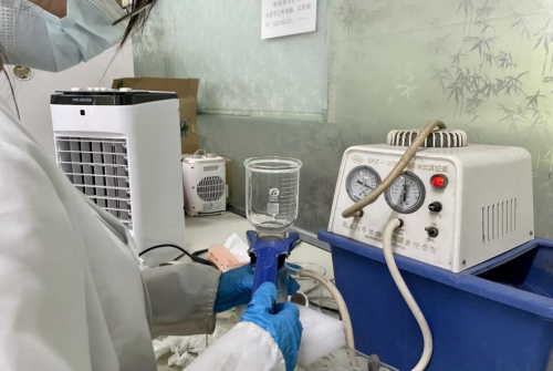 图为“行走”团队对实验样品进行抽滤