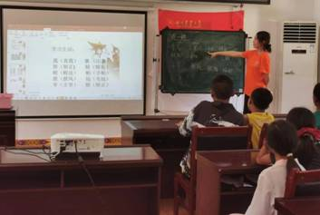 “语”结童心团队成员正在教授普通话