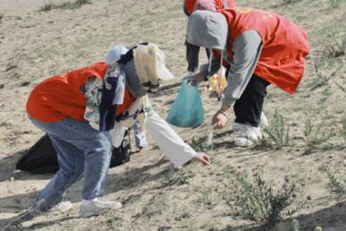 烛光点彝团队在捡拾垃圾