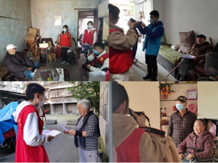 图为校团委学生实践与志愿服务中心成员上门走访