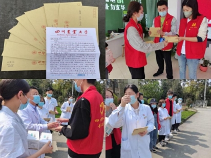 “防疫人员四点起床,不喝水不上厕所只为给居民多送一趟物资。”环境学院团委志工部志愿者在成都疫情解封后的第一时间,为当地惠民社区、光华社区、红桥社区等周边社区送去了口罩、酒精等防疫物资,并将290余封感谢和致敬信送到防疫人员手中,为他们送上暖心慰问,展现出青年学子面对疫情“相与济时艰”的责任感与使命感。