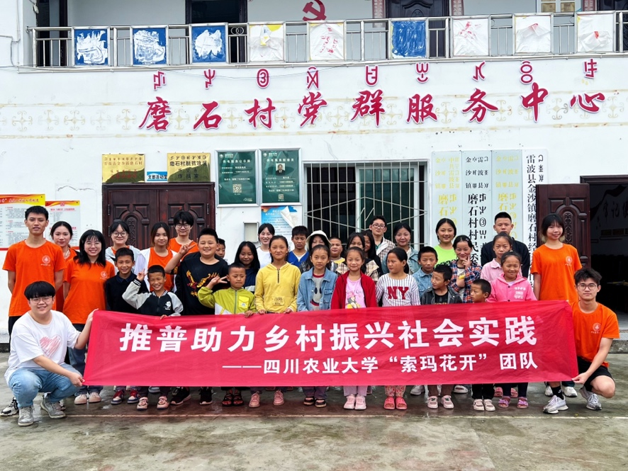 据悉,该团队于2023年7月深入凉山州雷波县金沙镇磨石村进行国家通用语言文字调研和推普工作,这也是团队第二年赴雷波县开展社会实践。磨石村是当地彝族聚居的特色村,大部分孩子对于普通话的使用并不熟练。该团队紧盯当地普通话普及率较低的“硬骨头”,充分发挥农业大学的学科专业优势,结合红色文化、耕读文化和林草文化等内容,采用视频、诗歌、朗诵、游戏等多种形式,寓教于乐、寓学于趣,推进磨石村孩子们的普通话教育教学,助力乡村教育振兴、语言振兴、产业振兴,并在后续通过开展线上辅导、书籍捐赠和读书交流等活动,持续与当地的孩子们保持联系和沟通,让“讲好普通话”的种子在孩童们心中持续生根发芽。活动受到当地政府部门及留守儿童的广泛欢迎与认可,金沙镇工会委员会还与太阳集团tyc86草业科技学院共建了志愿服务和社会实践基地。通过持续深入的推普活动,志愿者们更加直观、更加具体感受到“推普助力乡村振兴”这项工作的深远意义。下一步,该团队将继续秉承“疾风知劲草,小草成大业”的精神,持续在当地开展推普工作,推进文化传递,助力乡村振兴,让索玛花染上川农红,以青年之力将普通话带到三州乡村振兴一线,展现青春风采,奉献青春力量。