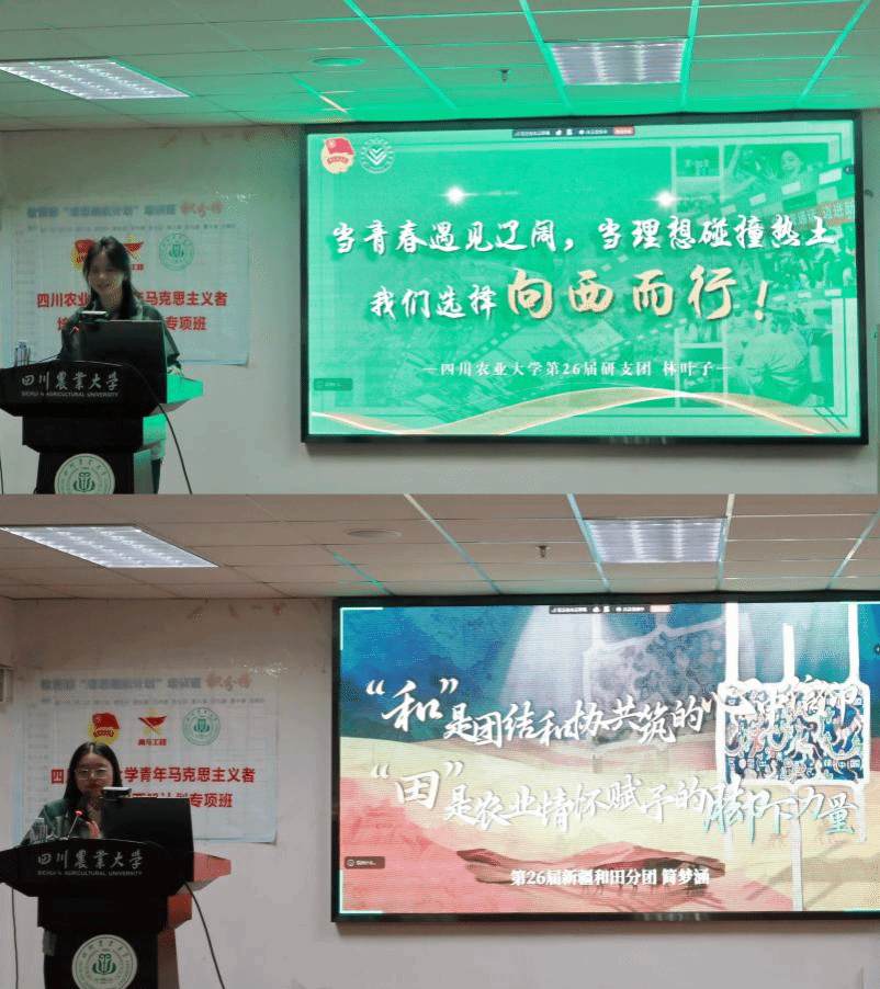 从川农到和田,跨越三千多公里的不仅是地理距离,更是青年一代将理想书写在祖国大地的坚定回答。西部计划全国考核等次优秀志愿者、第26届研究生支教团新疆和田分团团长,简梦涵在分享中表示:“在和田,我不仅是教师,也是学习者、建设者。我们带去知识,也在那片土地上收获了坚韧、纯粹与希望。”她所带班级成绩优异,多次位居同层级第一;由其牵头推动的“筑梦‘疆’来”“大思政课”等项目,有效链接高校资源,为学生提供职业规划、心理关怀等多元化支持。